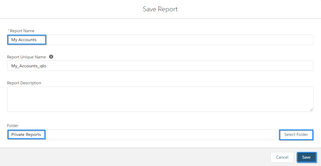 To see your report, click “Save & Run.” It will require you to choose the folder to put it in, give it a name, and, if desired, a description. Next, select “Save.”