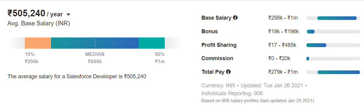 It is time to throw some light on the most awaited question, “What is an average salary of a Salesforce Developer?”. To be honest, there is no fixed answer or amount to conclude this statement. It all depends on your job location, job type, and even your expertise in various sectors. Therefore, we have quite a judgment related to the same.
