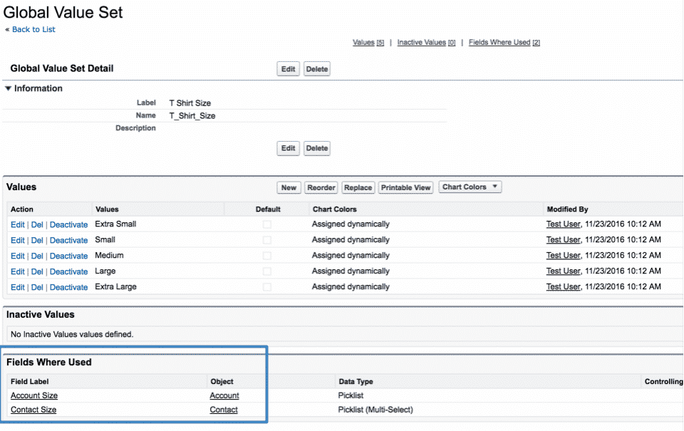 Did you notice something different? You can actually view the list of fields where this particular picklist has been used. This make it easy to keep track of all the places where you have used the picklist value set.