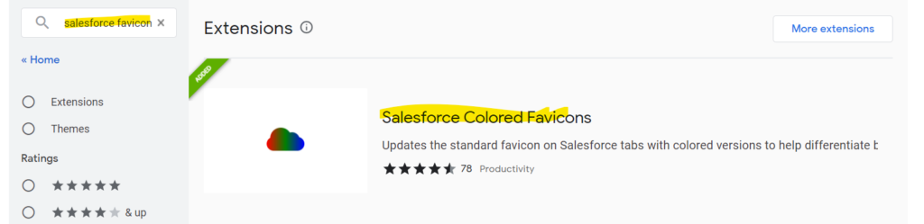 Start by searching for “Salesforce Colored Favicons” in the Chrome Web Store. Add the extension to your browser, and it will be readily available for use.