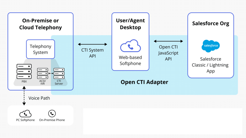 With Open CTI, you can create and integrate third-party computer telephone integration (CTI) systems with Salesforce call centres using a JavaScript API. Without installing specialized CTI adapters, we may use CTI to make softphone calls straight from within Salesforce.