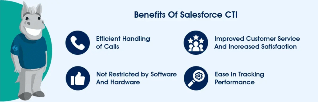 Simply put, Salesforce CTI is CTI that is integrated into Salesforce. Representatives can use CTI for Salesforce to conduct phone calls or have conversations using the data stored in Salesforce. CTI offers: