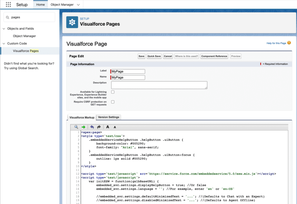 Configuring the Embedded Service Deployments is now necessary. Click Setup -> Embedded Service Deployments and choose the name of your group.