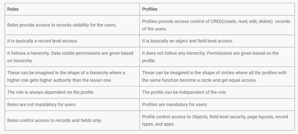 Salesforce Roles vs Profiles