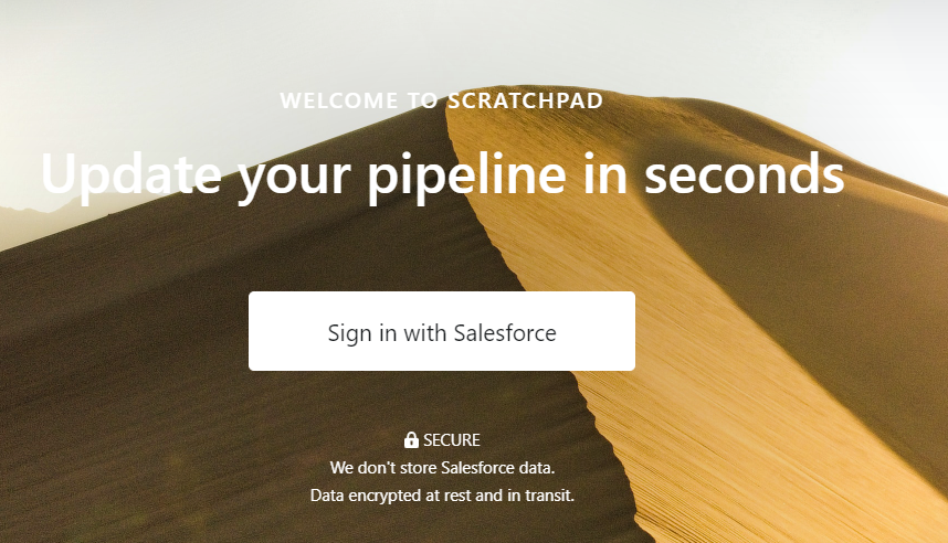 Upon launching Scratchpad, you’ll be prompted to connect your Salesforce account. Follow the on-screen instructions to authorize Scratchpad’s access to your Salesforce data. This connection enables Scratchpad to seamlessly sync your updates with Salesforce. Click on “Sign In with Salesforce” and enter your login credentials.