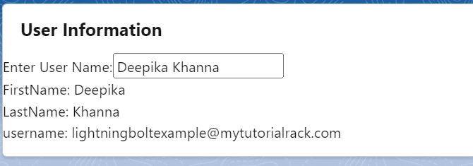 <input type="text" id="userNameInput" onchange={handleNameChange} />