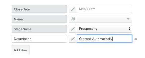 When you click on create Opportunity, another tab will open where I can set my default fields.