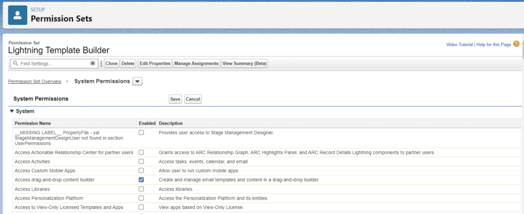 If you’re using Salesforce Sandbox, you might not see the “Edit in Builder” option. It’s advised not to create a new Permission Set in the Sandbox. Instead, select from the pre-existing Permission Set labels and then go to System Permissions.