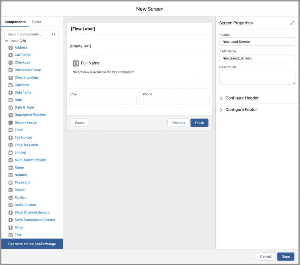 Salesforce Flow: You may eliminate human data entry and complicated business processes by using lightning flows, also known as simple flows. Flows ensure that necessary actions are completed accurately and save your users’ time, allowing you to work more efficiently rather than harder.Â