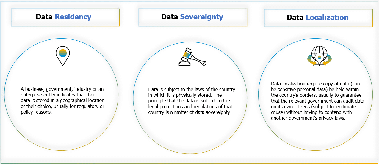 • Data Residency: The physical or geographical place in which company data is housed. For instance, storing data in India instead of the US.