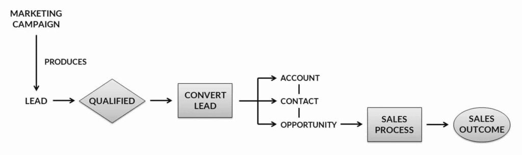 - Based on the lead’s supplied information, Salesforce automatically creates an account, contact, and, if relevant, an opportunity.