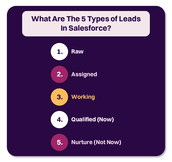Working: A lead in the “working” state indicates that the sales representative is actively following up with the lead, getting additional information, and assessing the lead’s potential as a sales opportunity.