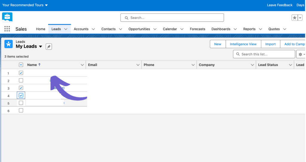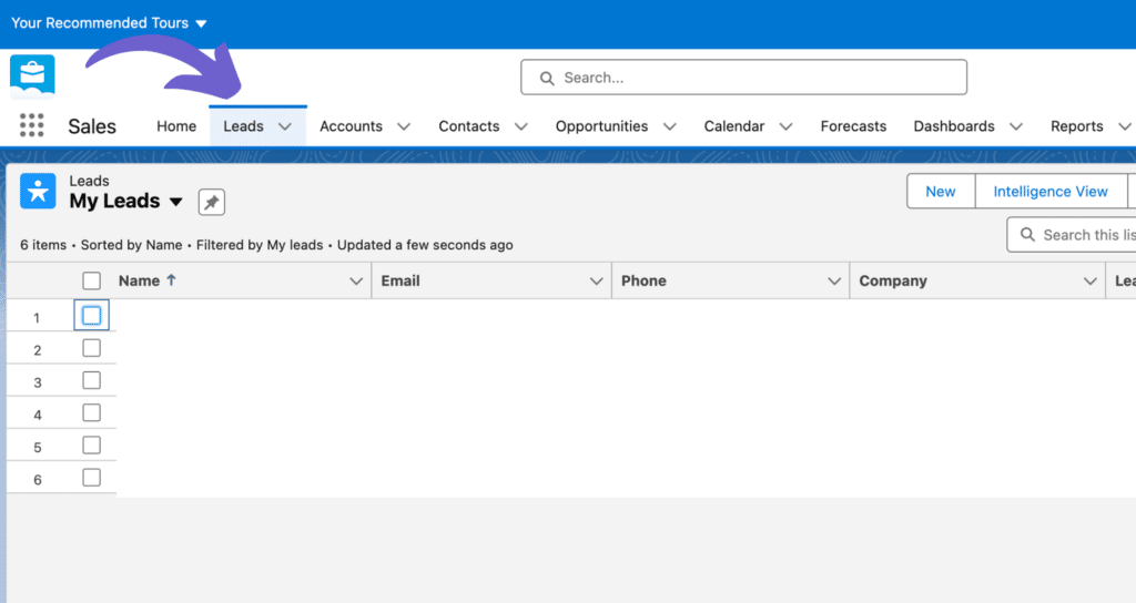- From the tabs, select Leads.